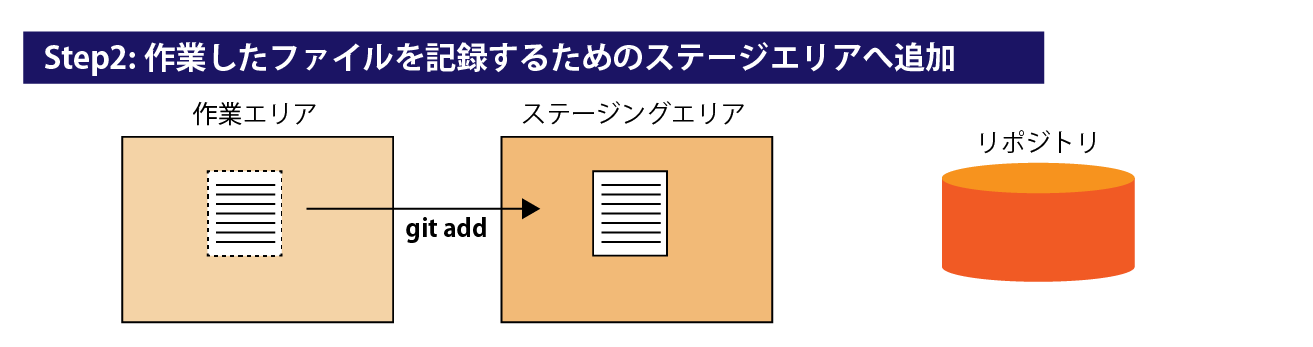 Step2:作業したファイルを記録するためのステージエリアへ追加